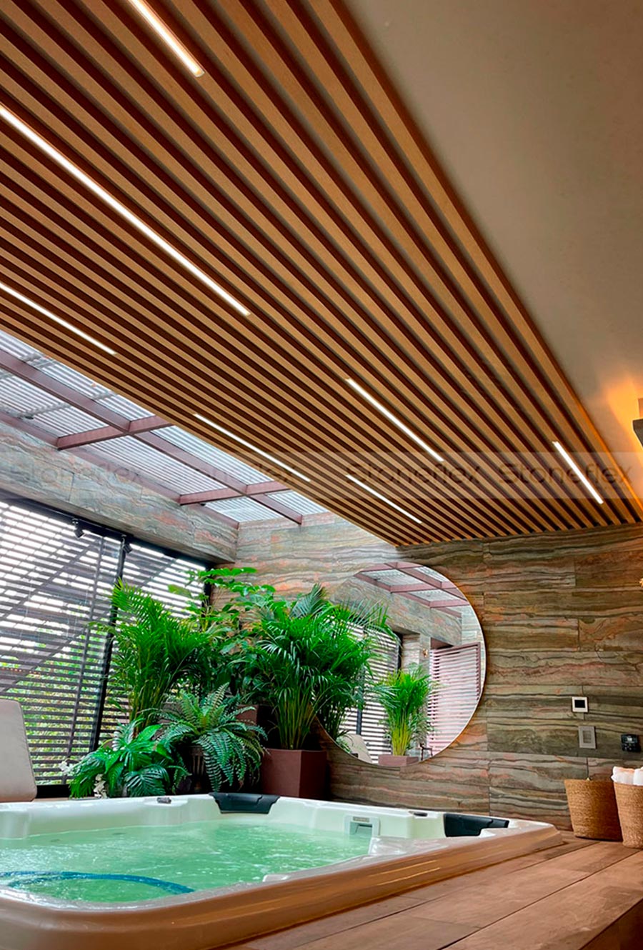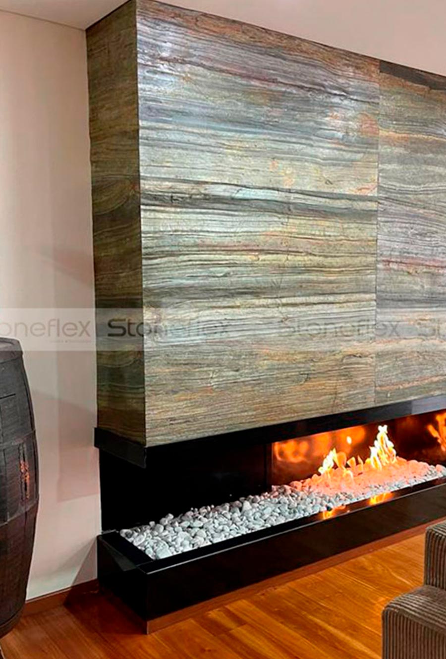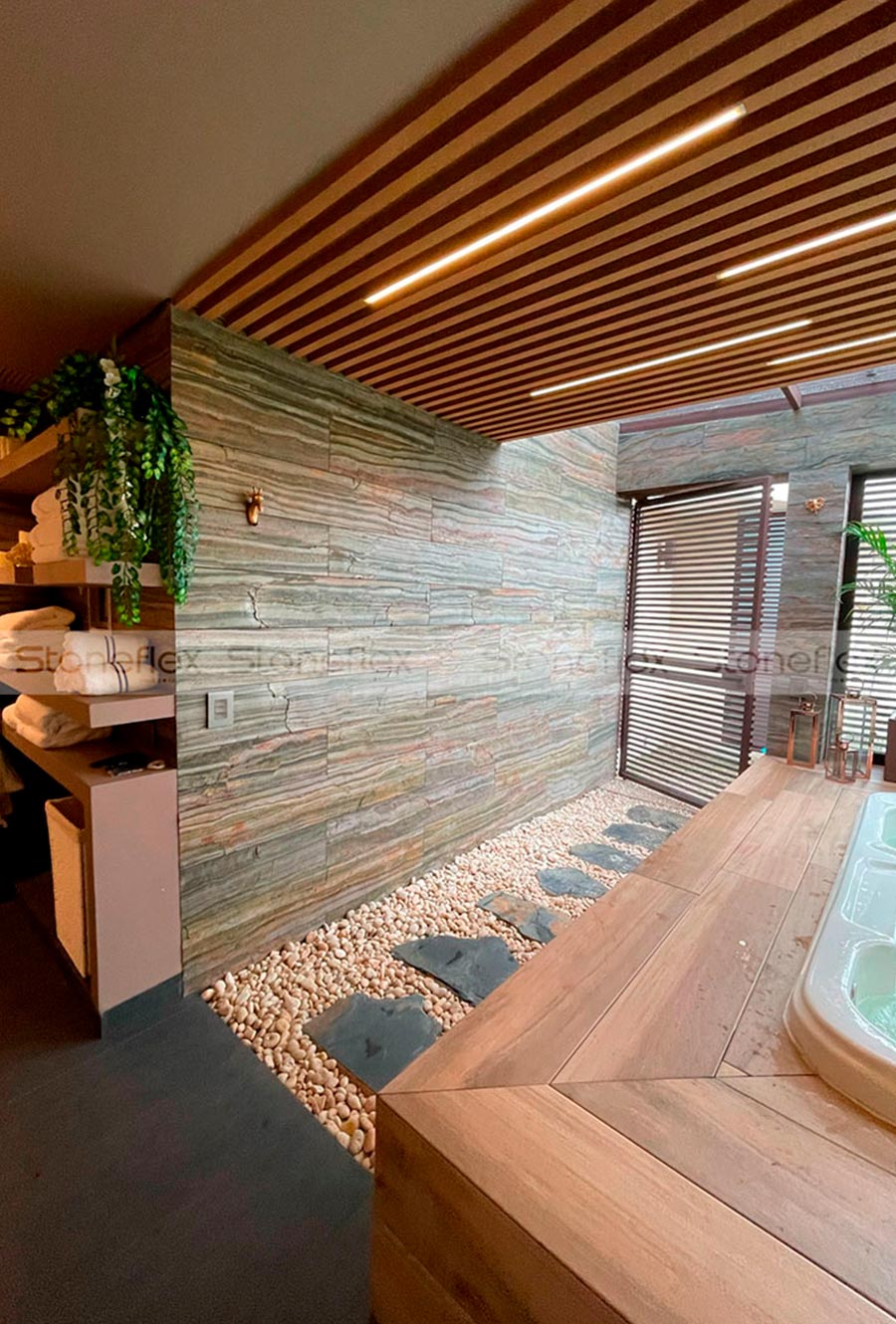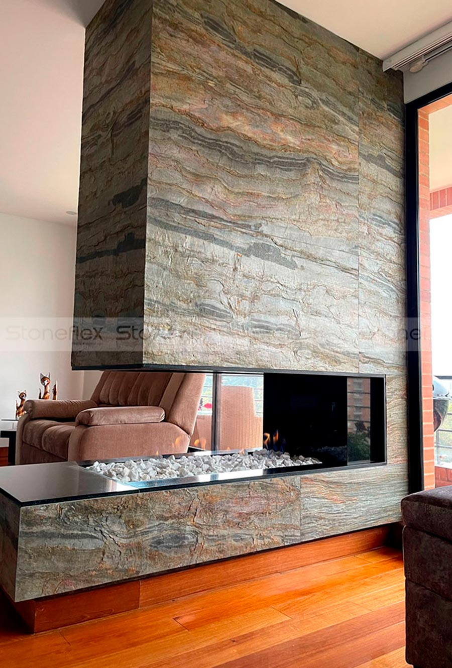 Acabados: Piedra con una superficie irregular con tonalidades variadas y brillos, alto texturizado por betas naturales